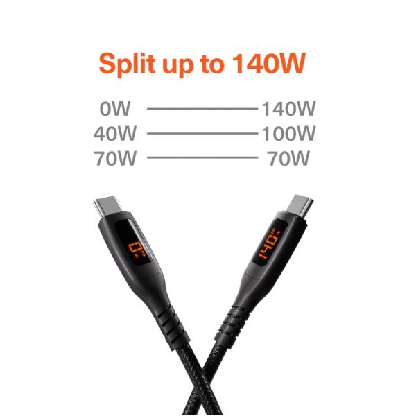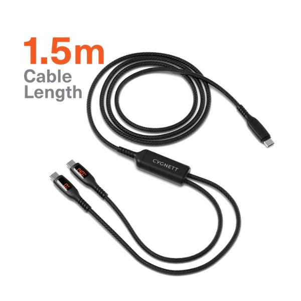 Unite Dual 2.0 140W Y-Type USB-C + LED Display 1.5M Black