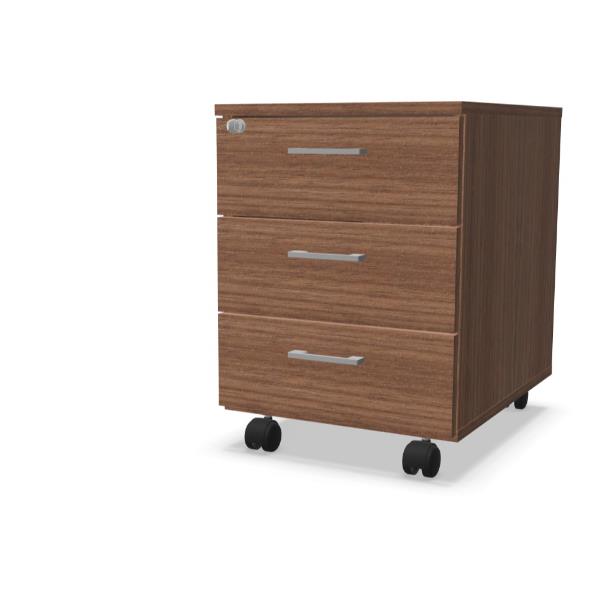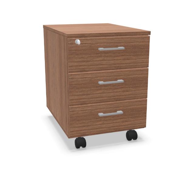 CASSETTIERA SU RUOTE 3 CASS. 42x56x58 Scocca: Noce Canaletto (NO) Frontali: Noce Canaletto (NO) Cassetto: Pvc (P) Maniglia: Look alu (J)