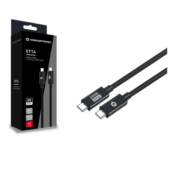 CAVO USB 4.0 Gen 3 C-C PD 3.1 240W 2m -- 48V 5A, 40Gbps, E-Mark