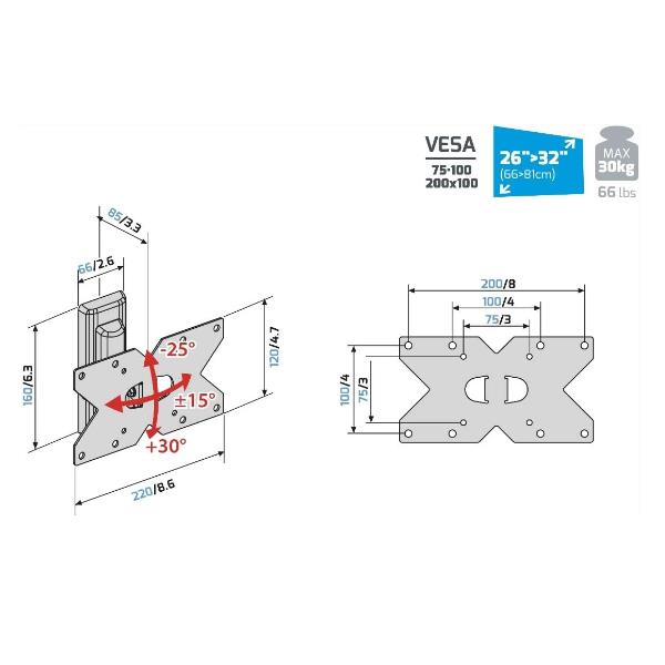 Peso massimo per schermo30 kg