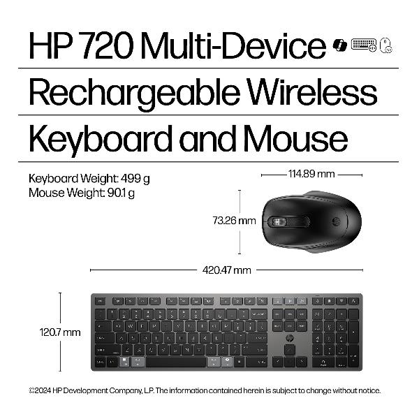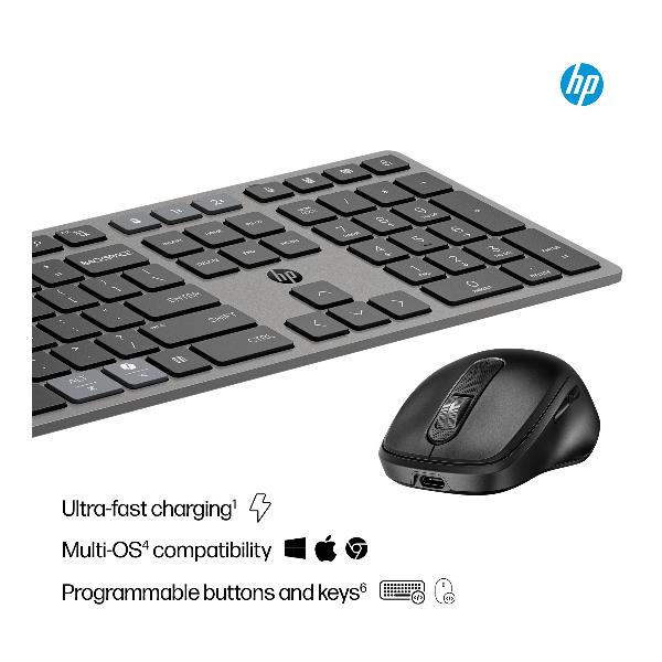 Combinazione di tastiera e mouse wireless ricaricabili multidispositivo HP 720