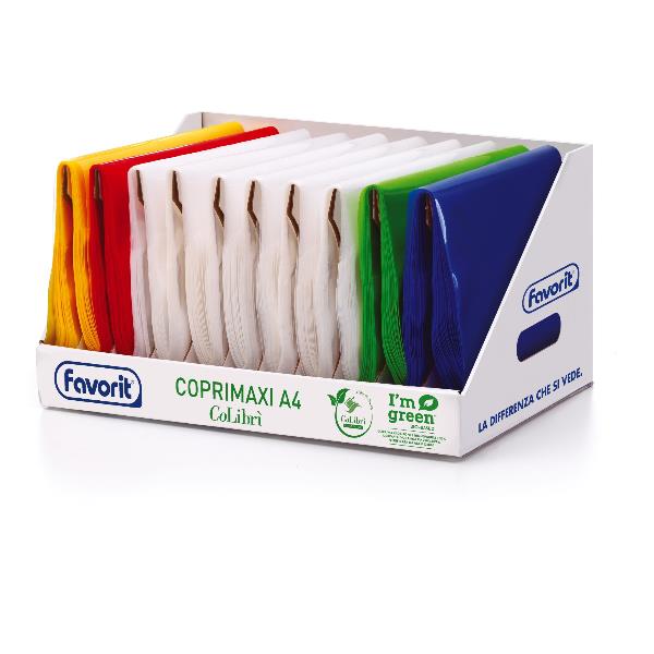 ESPOSITORE 300 COPRIMAXI TRASPARENTI COLORI ASSORTITI POLIETILENE BIO BASED 180 NEUTRI 30 ROSSI 30 BLU 30 GIALLO 30 VERDE