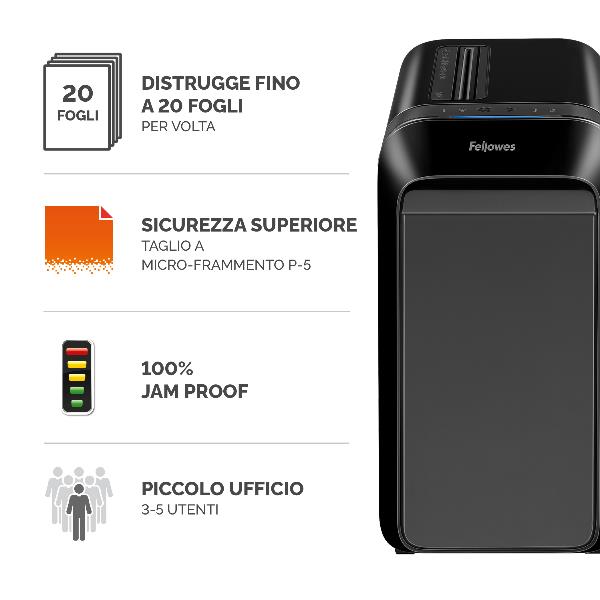 Distruggi documenti a microframmento LX221 per piccolo ufficio con INTELLIBAR nero