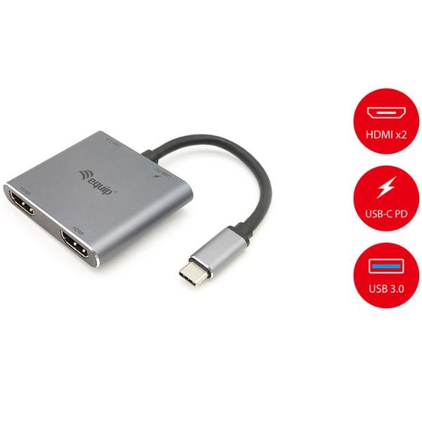 EQUIP - ADATTATORE 4-in-1 MST DUAL HDMI, USB 3.0, 100W USB PD