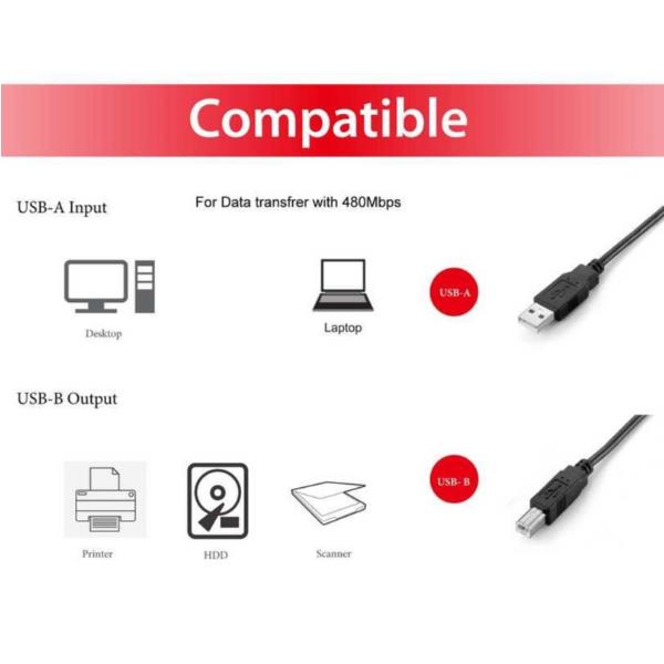 USB 2.0 CABLE A->B M/M 5 0M BLACK