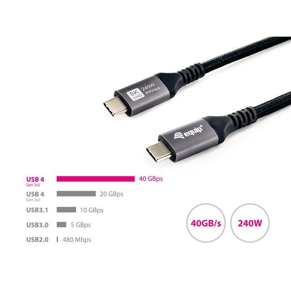EQUIP - CAVO USB 4 da C a C, PD3.1 240W, 8K/60Hz, 40Gbps, Nero - 0.5m