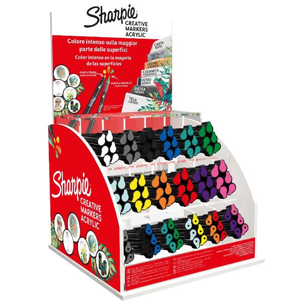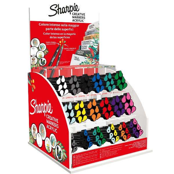 Espositore SHARPIE ACRYLIC MARKER 144 pezzi: 72 pezzi a punta tonda (12 colori) + 72 pezzi a punta brush (12 colori)