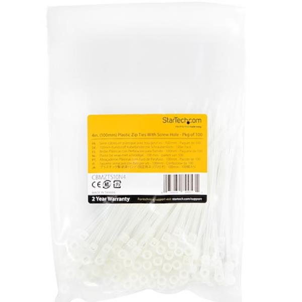 Fascette fermacavo da 10 cm con foro di montaggio /per viti - Fascette di Nylon 66 autobloccanti 100 pezzi (CBMZTS10N4)
