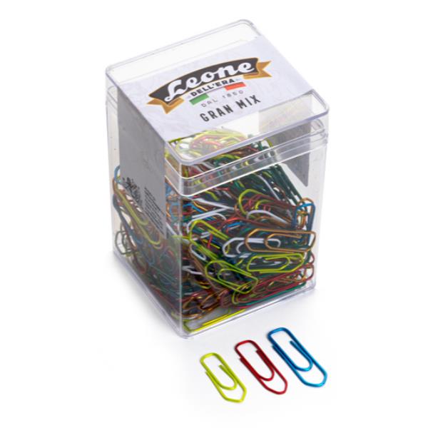 Fermagli colorati metallizzati in barattolo da 125 g. in dimensioni miste