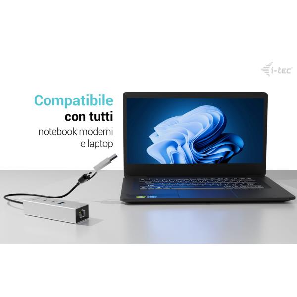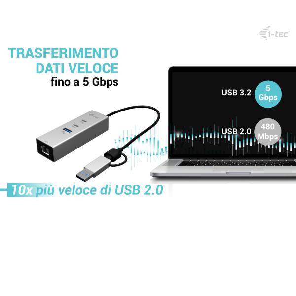 XHUB331TCL HUB USB-C con 3 PORTE USB 3.0 + LAN GIGABIT