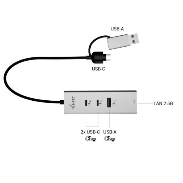 HUB 3 x USB (2x USB-C 1X USB-A) + LAN