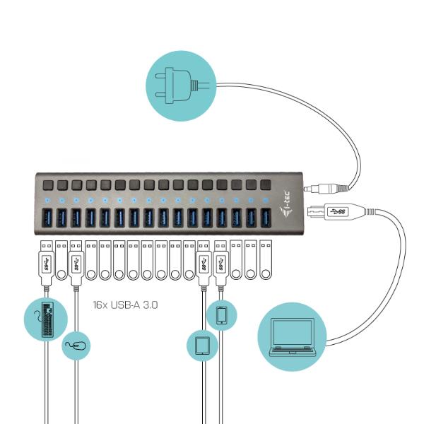 USB 3.0 CHARG 16 PORT+PW ADAPT 90W