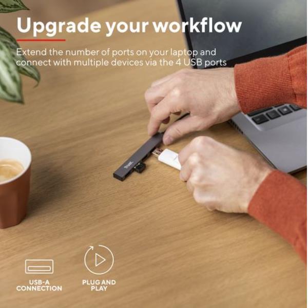 HUB USB A CON 4 PORTE USB-A 2.0 USB-A 2.0 A - TRUST HALYX - ALLUMINIO