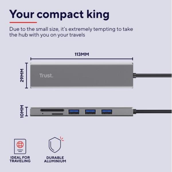 HUB USB C CON CARDREADER E 3P USB-A 3.2 + CARD READER SD E MICRO-SD - TRUST HALYX - ALLUMINIO