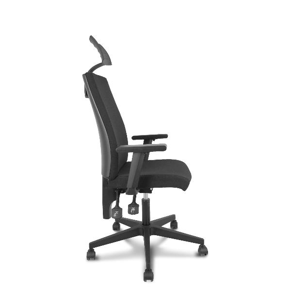 Sedia I-Line Contatto permanente a doppia impugnatura Tessuto Nero Base nera Braccioli 1D Poggiatesta Ruote in nylon autofrenanti 50mm