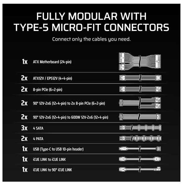 iCUE LINK HX1500i SHIFT 1500 Watt Cybenetics Platinum Fully Modular C20