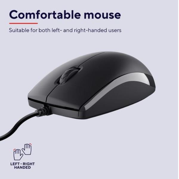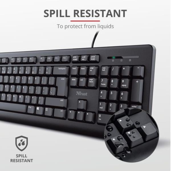 KIT DESK SET TASTIERA E MOUSE CABLATI RESISTENTI AGLI SVERSAMENTI- LAYOUT ITALIANO - TRUST PRIMO - NERO