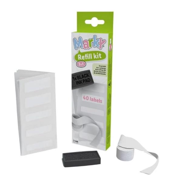Kit ricarica Marky composto da 40 etichette adesive 1mt termoadesivo 1 cuscinetto per altre 1000 impronte