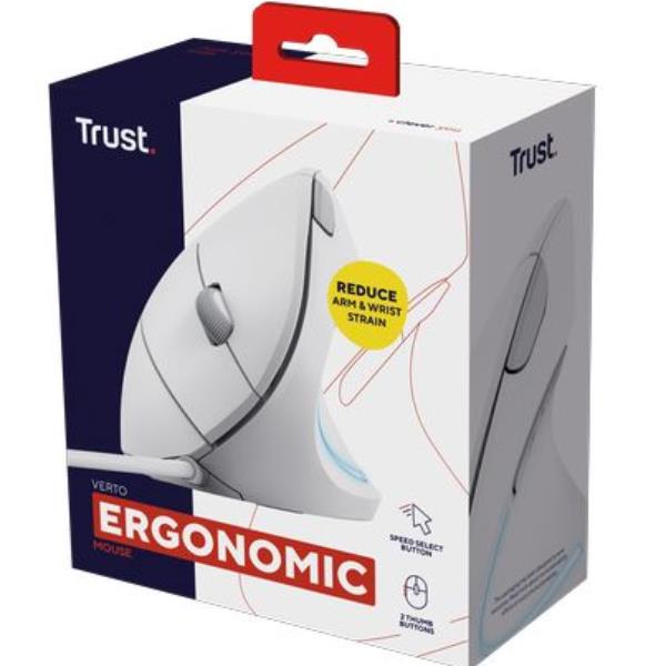MOUSE CABLATO ERGONOMICO VERTICALE - TRUST VERTO - BIANCO