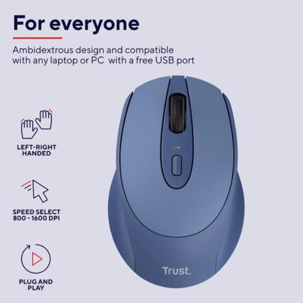 MOUSE WIRELESS RICARICABILE - 1600DPI - TRUST ZAYA - BLU