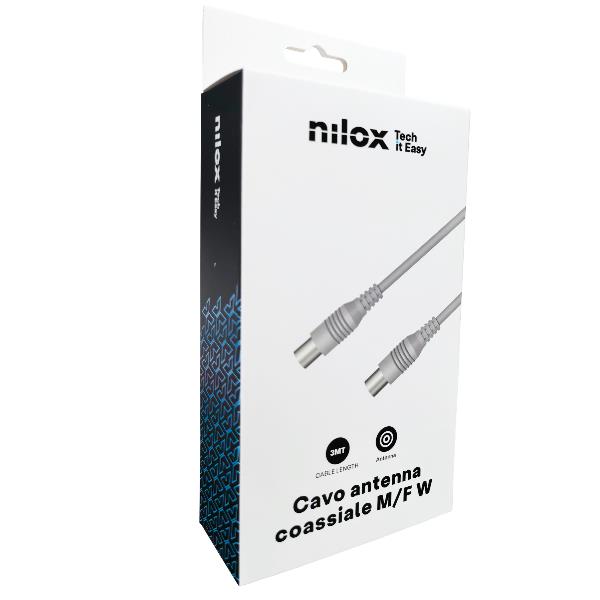 NILOX TECH - Cavo di congiunzione Video Antenna con connettore 9.5 mm a connettore 9.5 mm, maschio a femmina, lunghezza cavo 3 mt, adattatore Maschio–Maschio incluso (Retail pack)