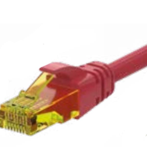 PATCH CORD U/UTP CAT.6A 4X2X26AWG CONDUTTORE A TREFOLO GUAINA LSHF COLORE ROSSO 5M