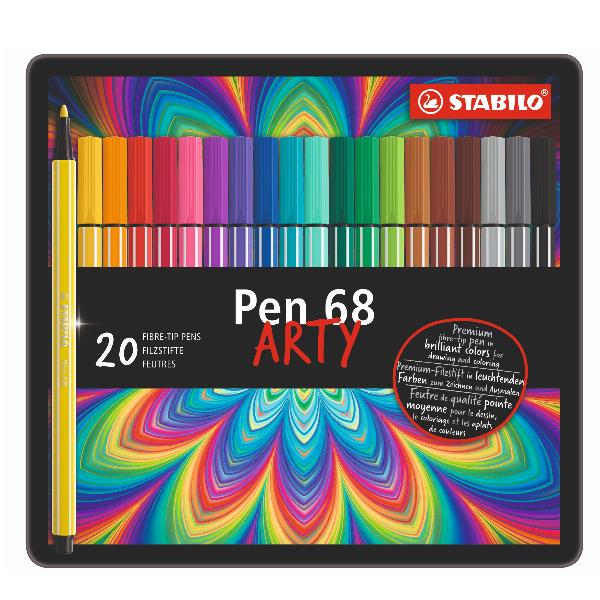 Stabilo Pen 68 scatola in metallo 20 colori assortiti penna per grafica inchiostro a base d acqua punta media 1mm in feltro (conf.20)