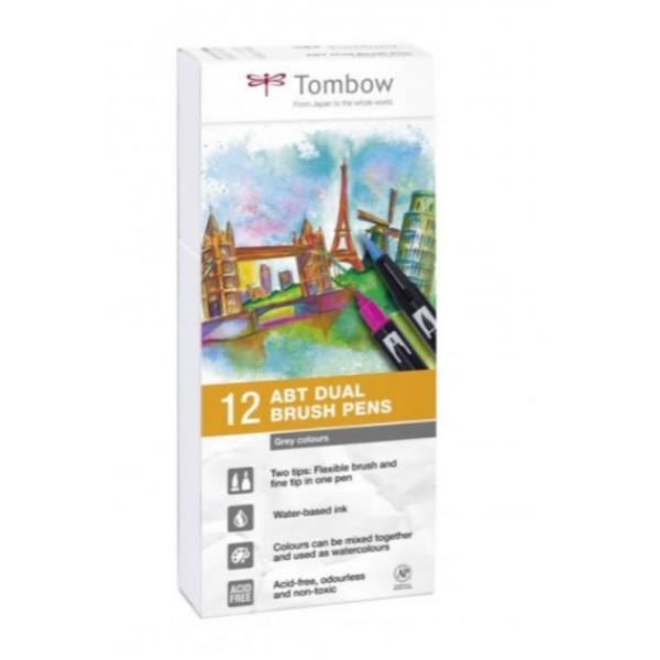 12PZ PENNA PENNELLO DUAL BRUSH - collezione grigi
