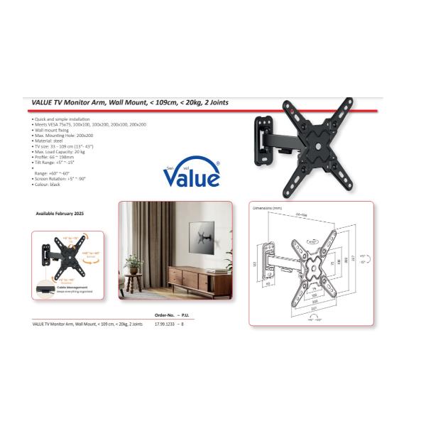 EQUIP - STAFFA TV 37" -80" FULL MOTION TILT/SWIVEL DA PARETE