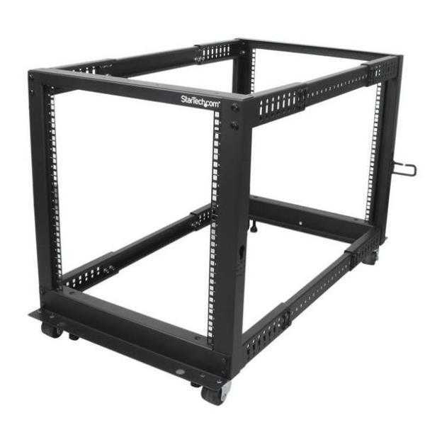 Armadio Server Rack con 4 staffe a Telaio Aperto 12U con profondita regolabile ruote orientabili e piedi di livellamento