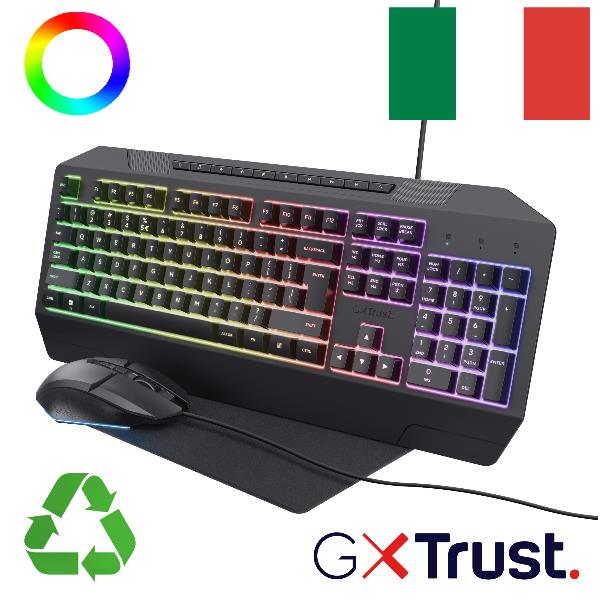 SET GAMING 3-IN-1 - TASTIERA + MOUSE + MOUSEPAD LAYOUT IT - TRUST GXT 791 NERO