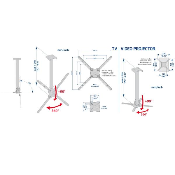 EQUIP - STAFFA TV 37" -80" FULL MOTION TILT/SWIVEL DA PARETE
