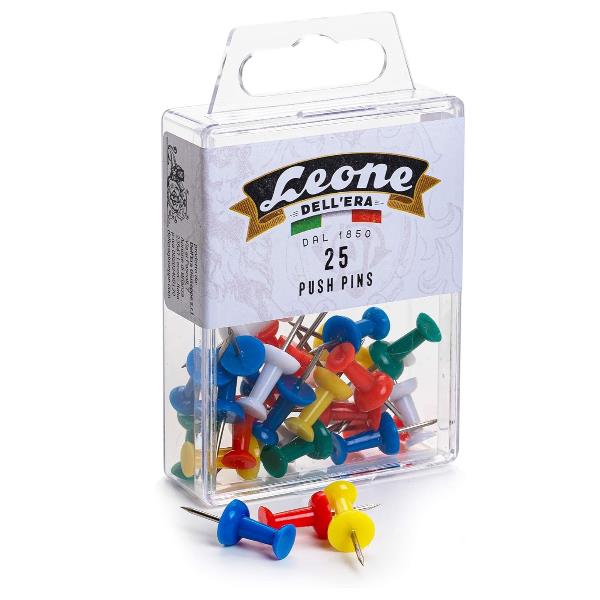 Spilli cartografici Push Pins con torretta colorata in scatola appendibile da 25 push pins