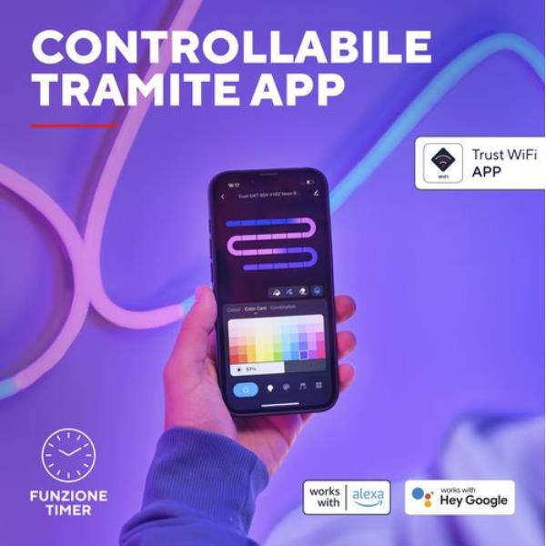 STRISCIA LED RGB 5M PROGRAMMABILE E DIMMERABILE TRUST VYBZ GXT 904 - ALEXA - GOOGLE HOME