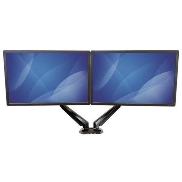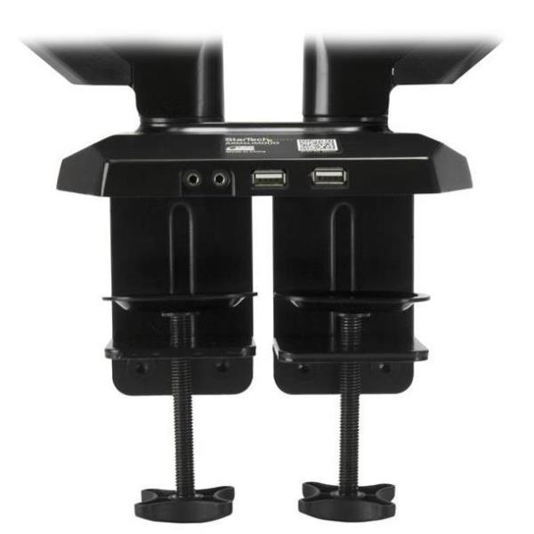Supporto a Doppio Braccio per dual Monitor con 2 porte USB e Audio Pass-Through