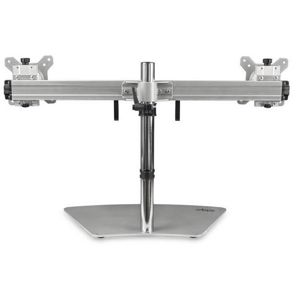 Supporto per due monitor - Orizzontale - Argento con Base a basso Profilo in Aluminio e Acciaio per Monitor fino a 24