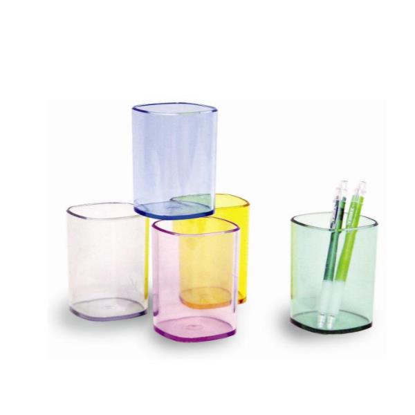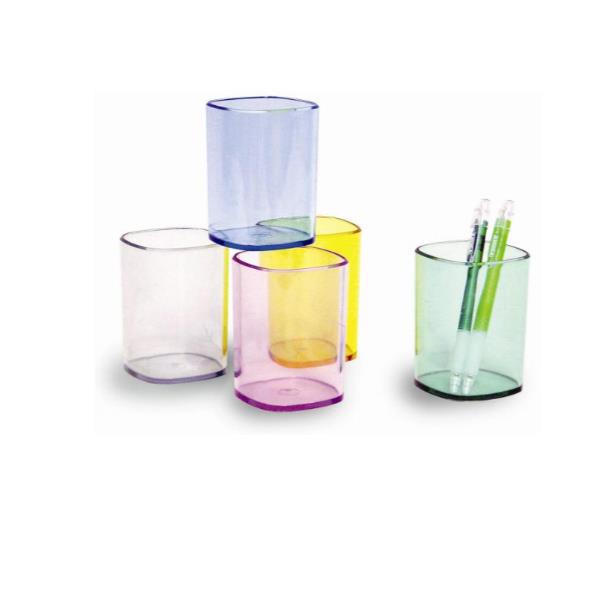 BICCHIERE PORTAPENNE - - ARANCIO TRASPARENTE 65X65X95 MM CON SPESSORE ELEVATO E OTTIMA STABILITÀ