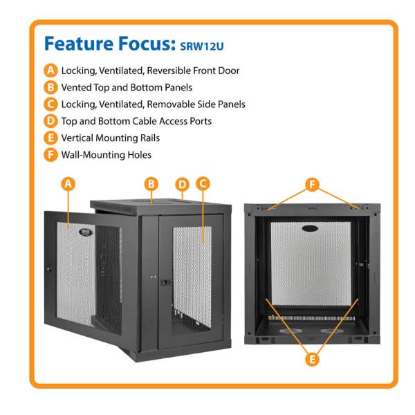 Tripplite SmartRack 12U Low-Profile Switch-Depth Wall-Mount Small Rack Enclosure - SRW12U