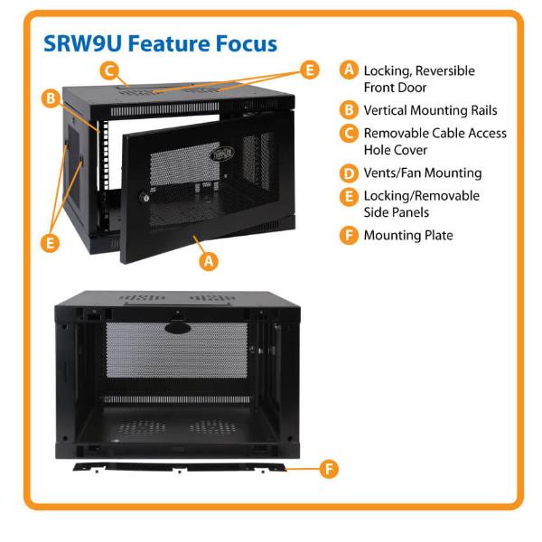 Tripplite SmartRack 9U Low-Profile Switch-Depth Wall-Mount Mini Rack Enclosure - SRW9U