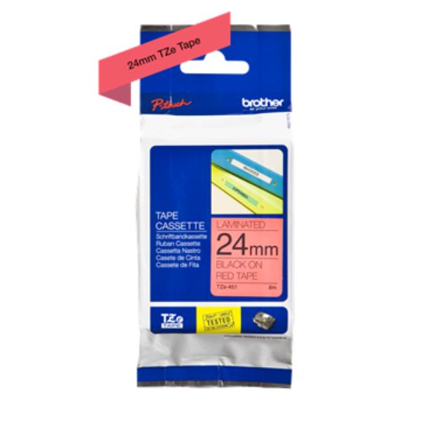 NASTRO TZ 24 MM NERO SU ROSSO LAMINATO ( LUNGHEZZA 8 METRI )