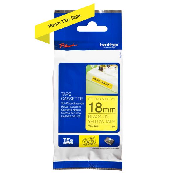 NASTRO TIPO TZ 18 MM NERO - GIALLO ADESIVO RESISTENTE LUNGHEZZA 8 METRI