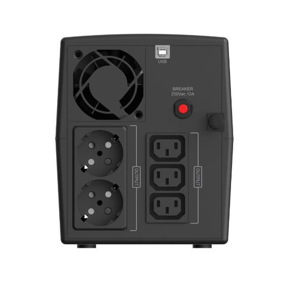 UPS 1500VA 900W, IEC x 3, Schuko x 2, HID USB, AVR