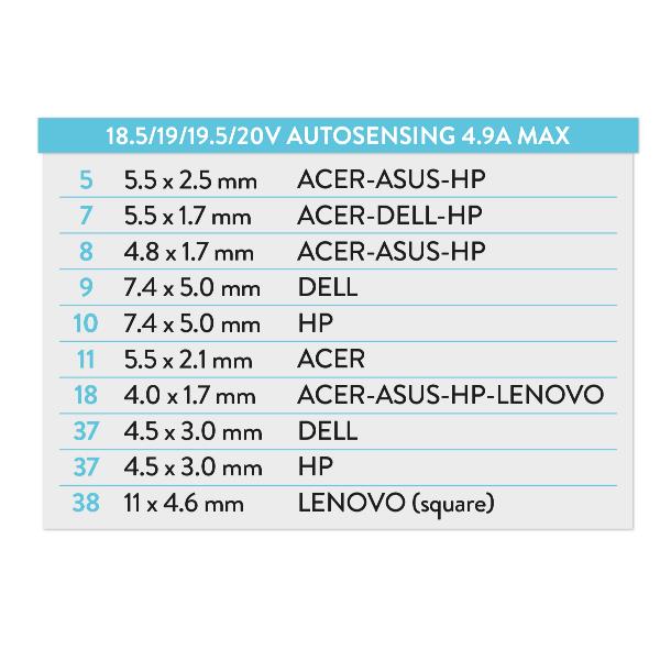 XPWNB-9010T Alimentatore Universale per Notebook 90W Compact Autosensing - 10 Tips