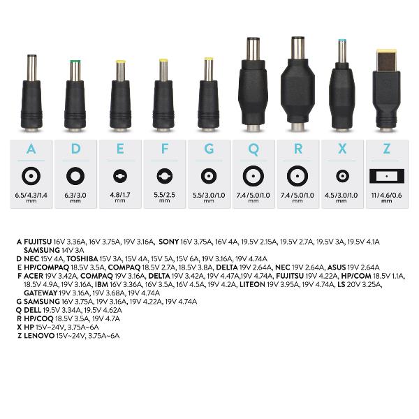 XPWNB90C - Alimentatore Notebook Universale da 15 a 24V 90W COMPACT 9 TIPS